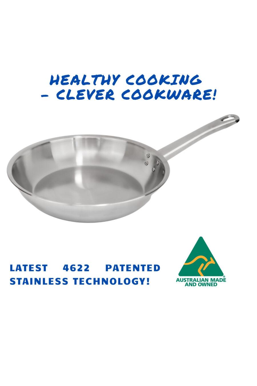 Part of our Clever Cookware Range made from from Core 4622 Ferritic Stainless Steel developed by Outokumpu P/L that has high heat conductivity, No Nickel, No toxicity and is highly polished to resist food sticking,