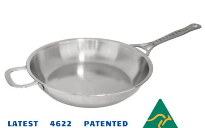 28 cm New 4622 Stainless Satay Frypan – Tig Welded Double Handles (long and short handles), part of our premium, high quality Clever Cookware Range, from Core 4622 Ferritic Stainless Steel developed by Outokumpu that has high heat conductivity, No Nickel, No toxicity, highly polished to resist food sticking and fast heat dispersion suited for Induction cooking, low maintenance & lifetime warranty. Heavy Pan for the Aussie Man/Woman!