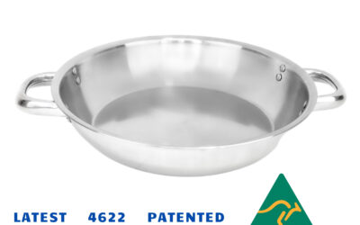 28cm 2mm Satay Fry Pan – Riveted Double Short Handles (great for Caravan Market) from Core 4622 Ferritic Stainless Steel.