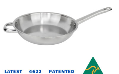 28cm 2mm Satay Fry Pan – Riveted Double Handles (long and short) from Core 4622 Ferritic Stainless Steel.